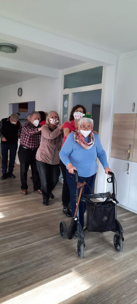 Wenn es keine Narren auf der Welt gäbe, was wäre dann die Welt…..Die selbst gestalteten fantasievollen Corona-Masken brachten alle zum Schmunzeln und die fetzige Faschingsmusik lud geradezu zu einer kleinen Polonaise ein.