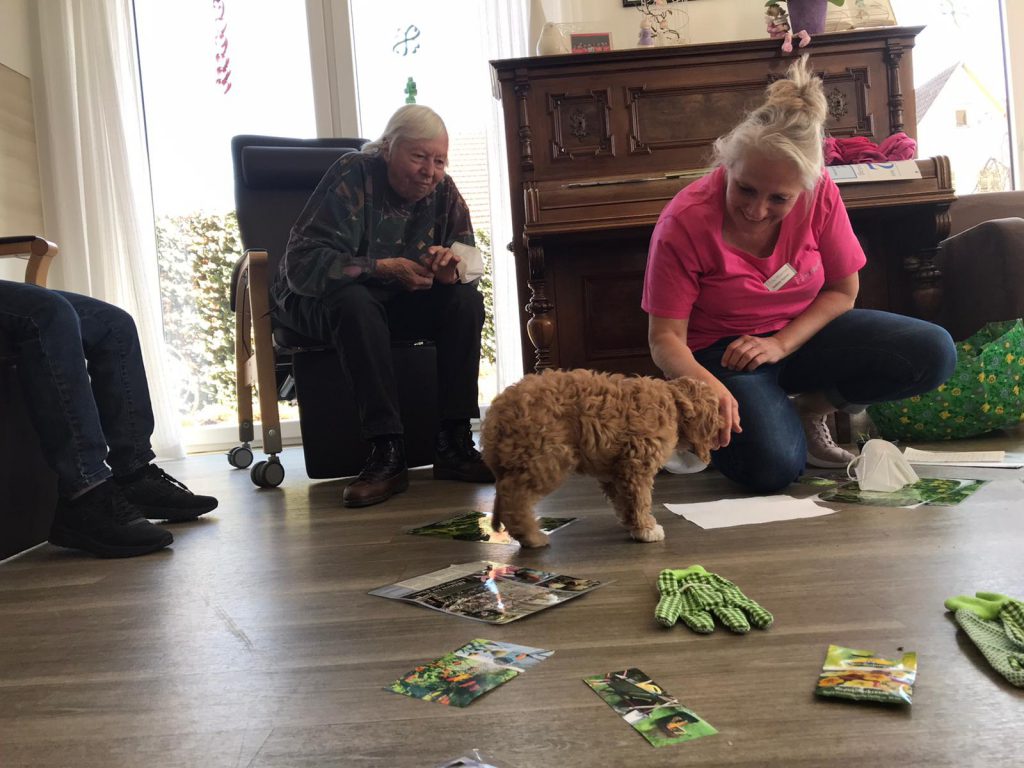 Beim Thema „Unser Garten“ bekam unsere Gruppe überraschenden Besuch vom neuen Liebling der Tagespflege „SLY“